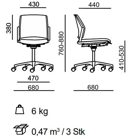 Höhe Sitzfläche 41-53 / Höhe Rücken 76-88 cm / Gewicht 5,5 kg