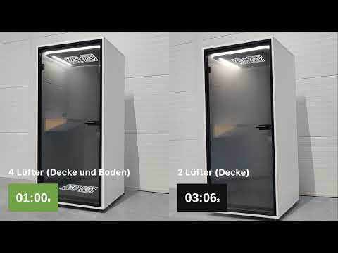 Belüftungsrate: 4,6 m3 / Minute Zwei Lüfter im Bodenmodul verbaut. Zwei Lüfter im Deckenmodul verbaut.